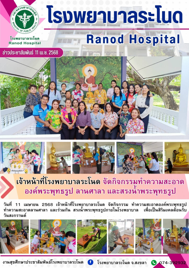 17 เม.ย.68 เจ้าหน้าที่โรงพยาบาลระโนด จัดกิจกรรมทำความสะอาด องค์พระพุทธรูป ลานศาสนา และสรงน้ำพระพุทธรูป