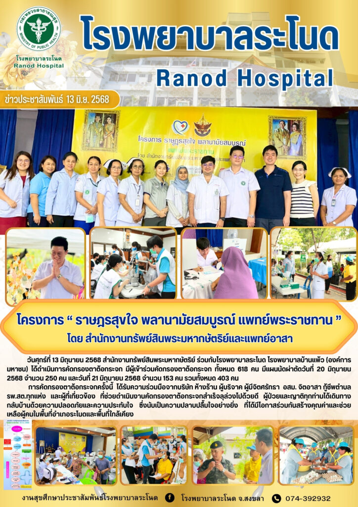 13 มิ.ย.68 โครงการ “ราษฎรสุขใจ พลามัยสมบูรณ์ แพทย์พระราชทาน”โดย สำนักงานทรัพย์สินพระมหากษัตริย์และแพทย์อาสา