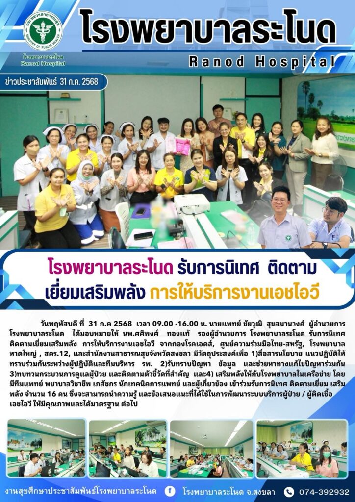 4 ส.ค.68 โรงพยาบาลระโนด รับการนิเทศ ติดตามเยี่ยมเสริมพลัง การให้บริการงานเอชไอวี