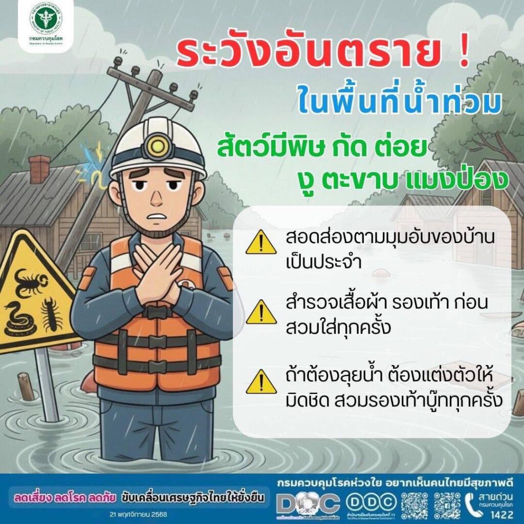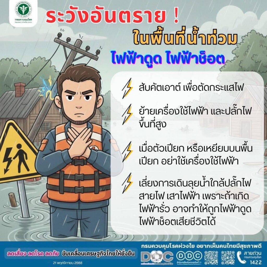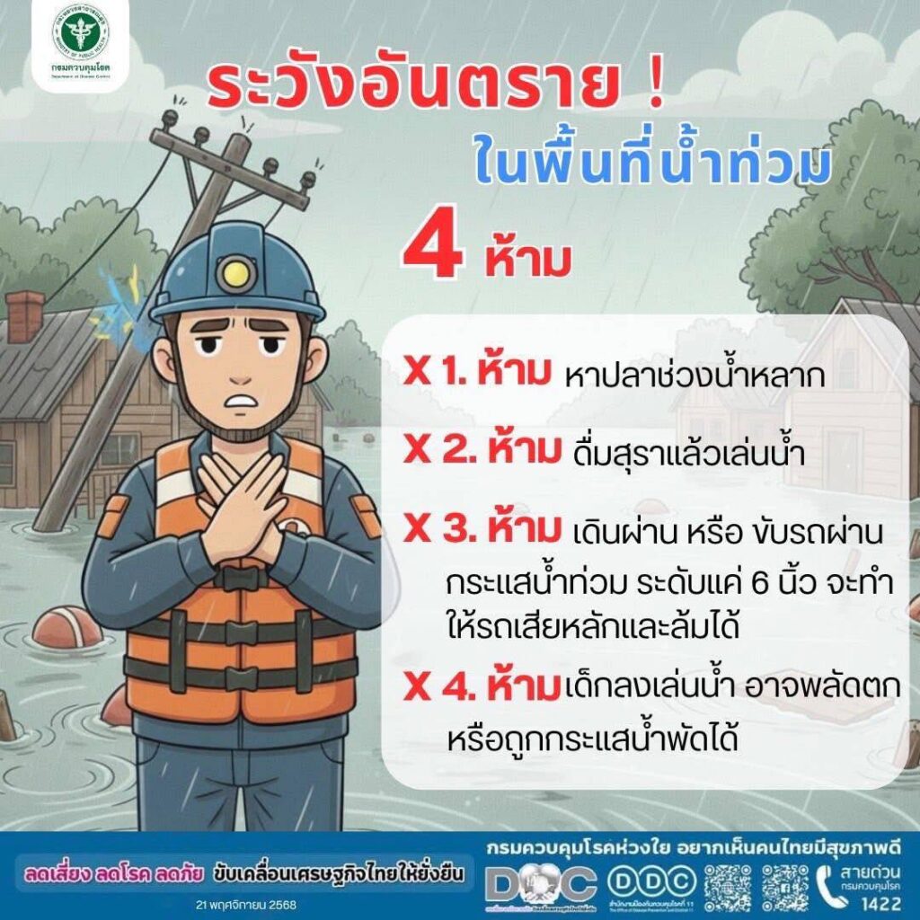 23 พ.ย.68 ข้อควรระวังอัตราย ! ในพื้นที่น้ำท่วม
